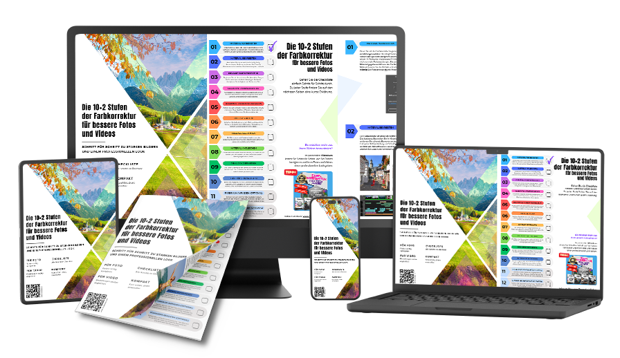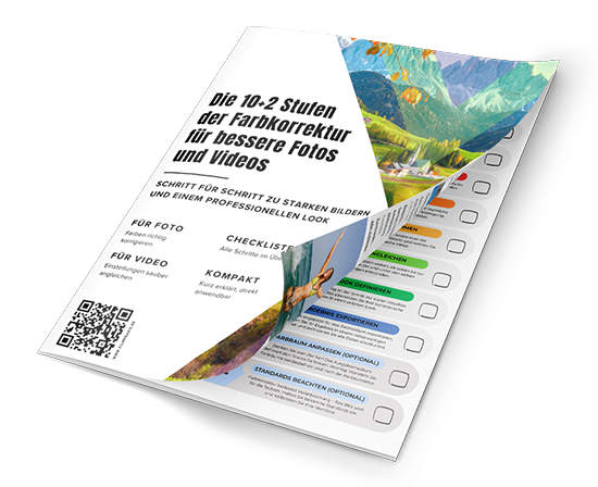 Laden Sie sich jetzt die „10+2 Stufen der Farbkorrektur“ als PDF-Dokument herunter und verbessern Sie Ihre Fotos und Videos noch heute.